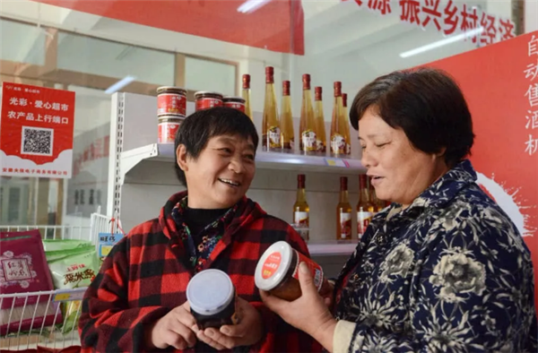 创新经营模式,常态运行有保障。“光彩.爱心超市”由颍州区工商联、商务局、金融办、扶贫办等发起,安徽央候电子商务有限公司、安徽酒趣机器人科技有限公司、中颍电商集团等十余家工商联会员企业共同出资、乡村集体出场地搭建。超市所在村以营业场地入股,收益则按参股比例由投资企业和村集体共同分配。参股企业发挥其行业优势,提供质优价廉的商品进入“超市”,并定期开展返利促销活动,让利乡邻及贫困群众,实现共赢;村集体收益部分则直接用于补贴贫困群众兑换生活物品、扶贫扶志,激发贫困群众劳动热情,真正将“输血式”扶贫转变为“造血式”扶贫。