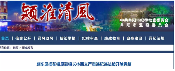 日前,经阜阳市监委和颍东区委批准,颍东区纪委监委对颍东区插花镇原副镇长林西文严重违纪违法问题进行纪律审查和监察调查。经查,林西文违反生活纪律,与他人发生不正当性关系;违反国家法律法规规定,利用职务上的